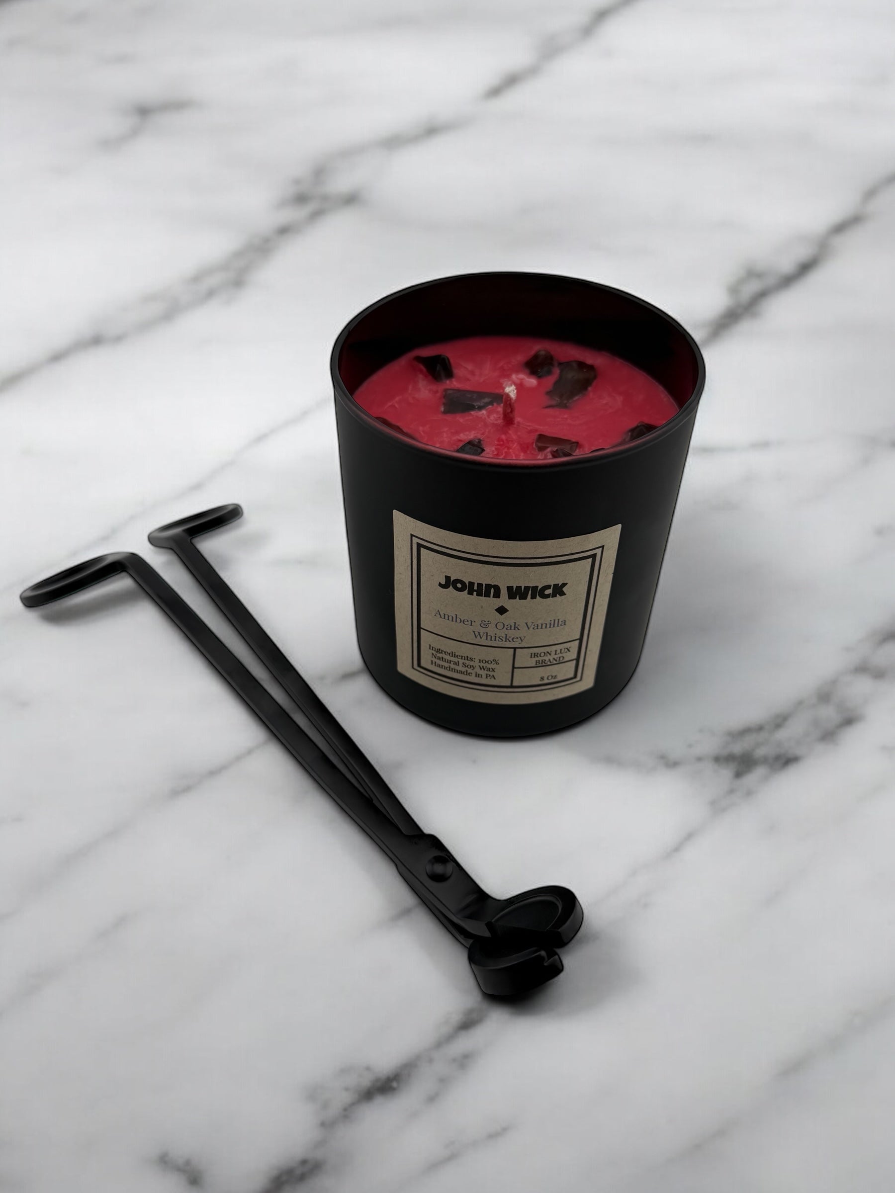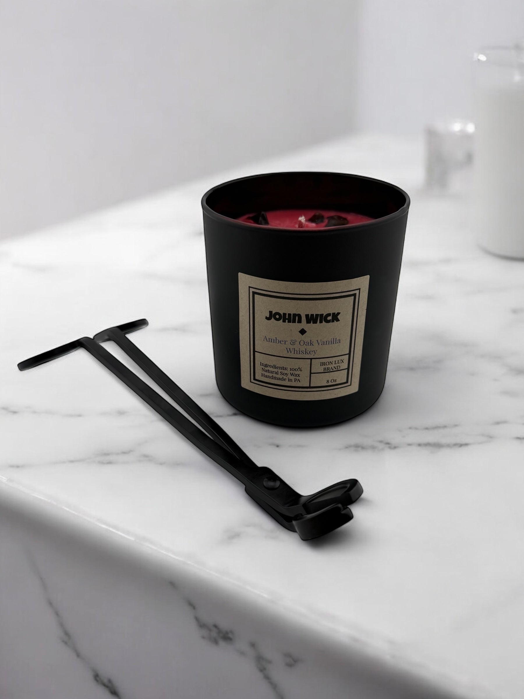 To make your candle last longer, remember to trim the wick to 1/4" before each use. This helps reduce soot and smoke, ensures an even burn, and keeps your Iron Lux candle in great shape!