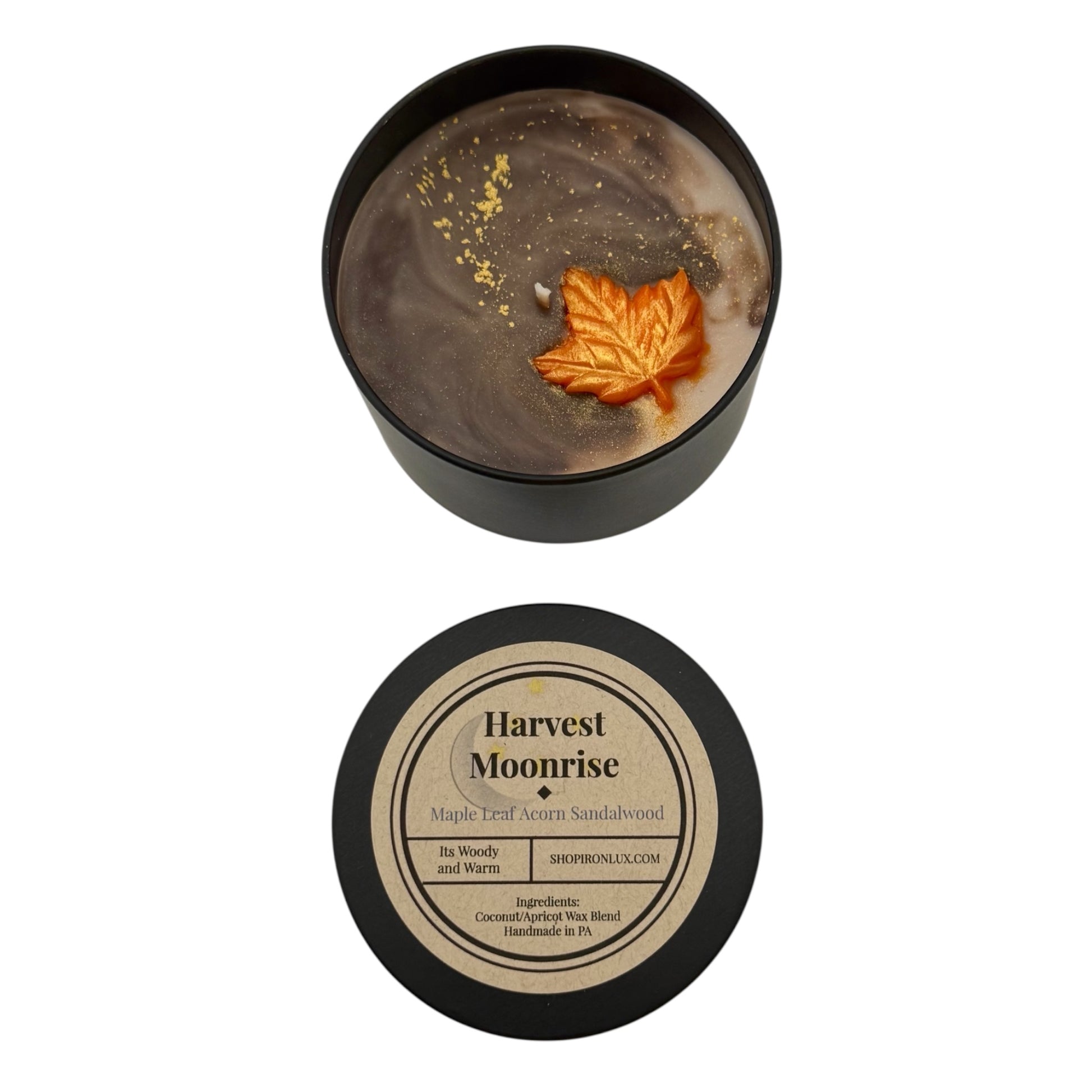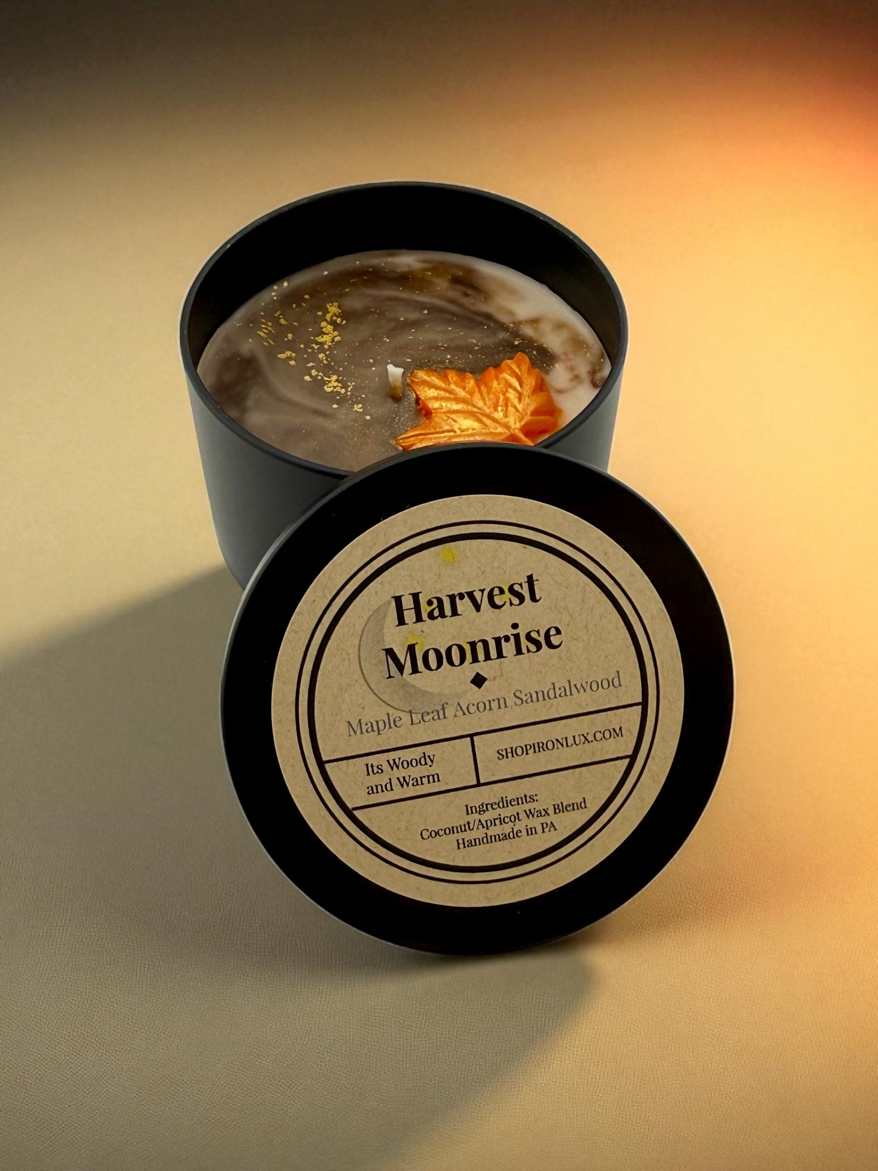 Crisp autumn evenings captured in a scent—maple leaf, warm acorn, and smooth sandalwood blend together to transport you to a golden harvest moonlit night.