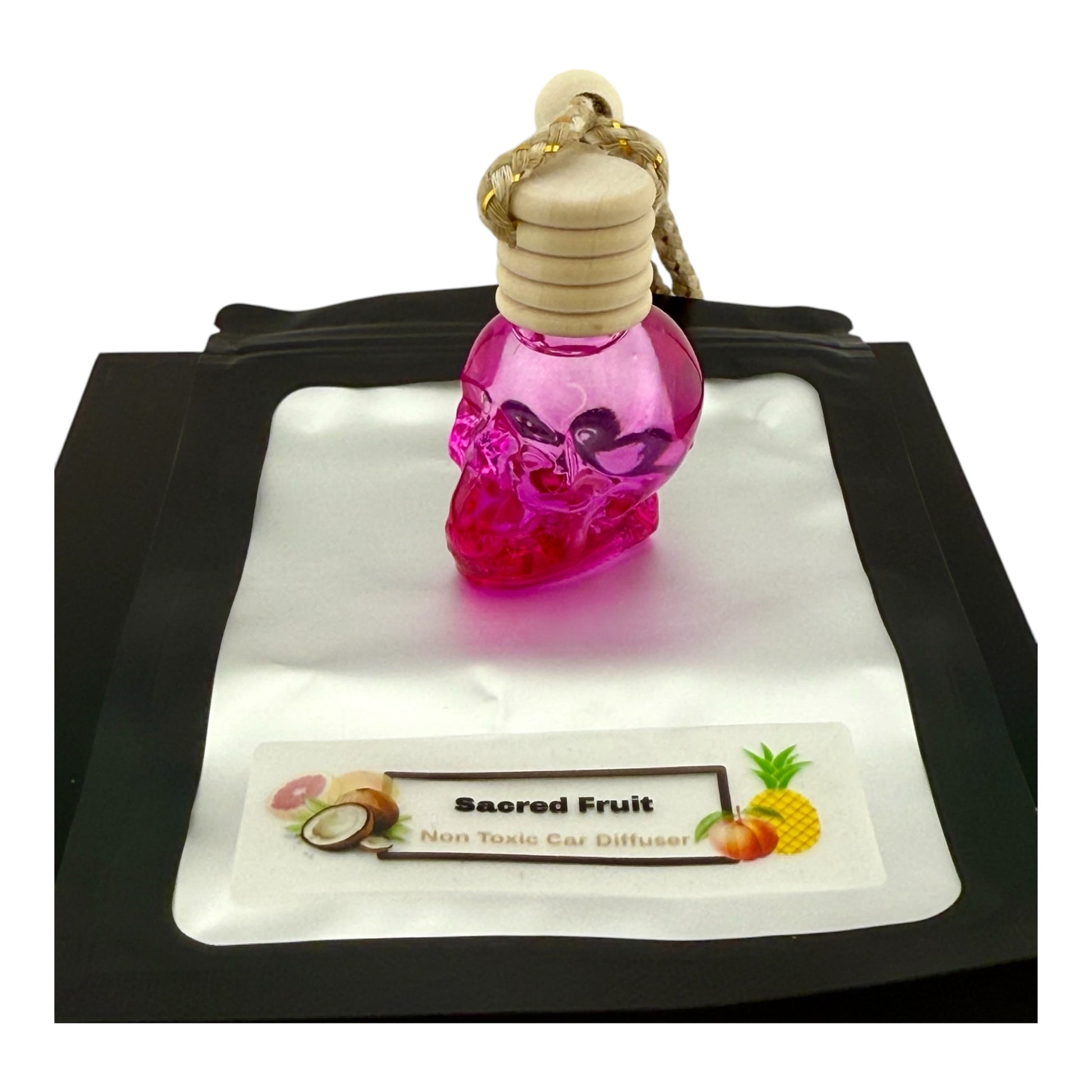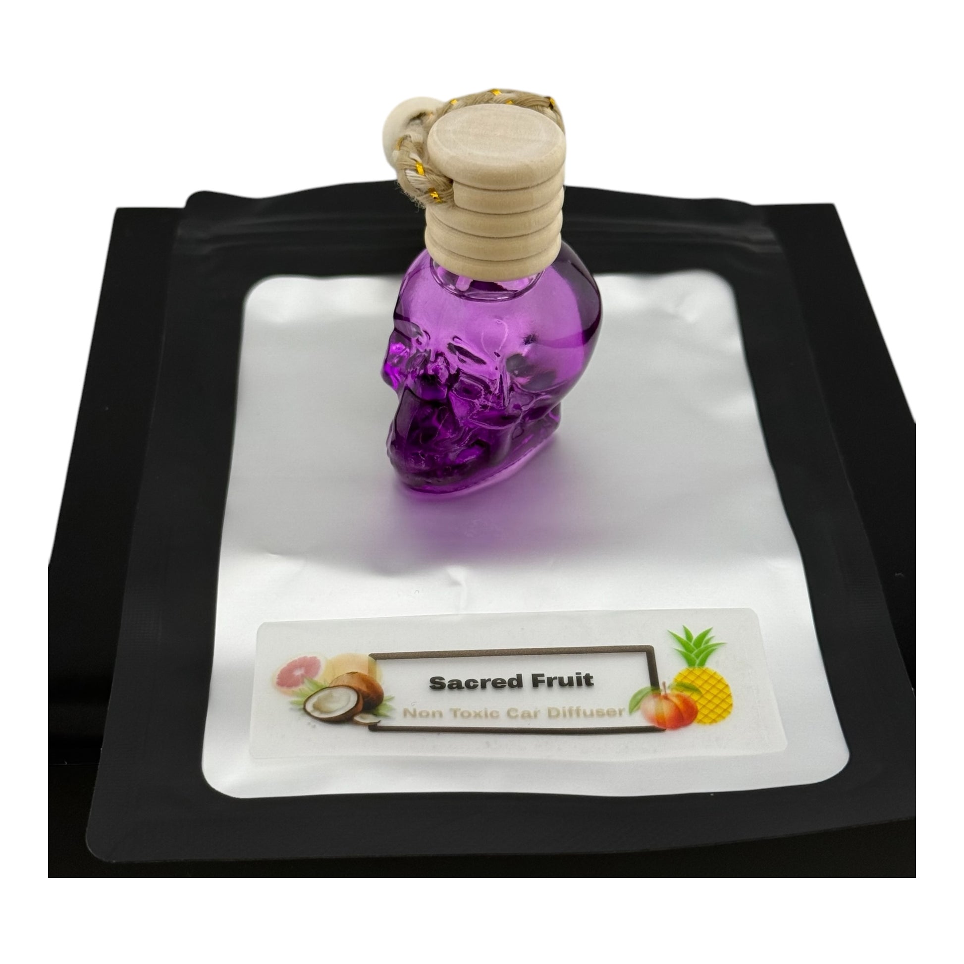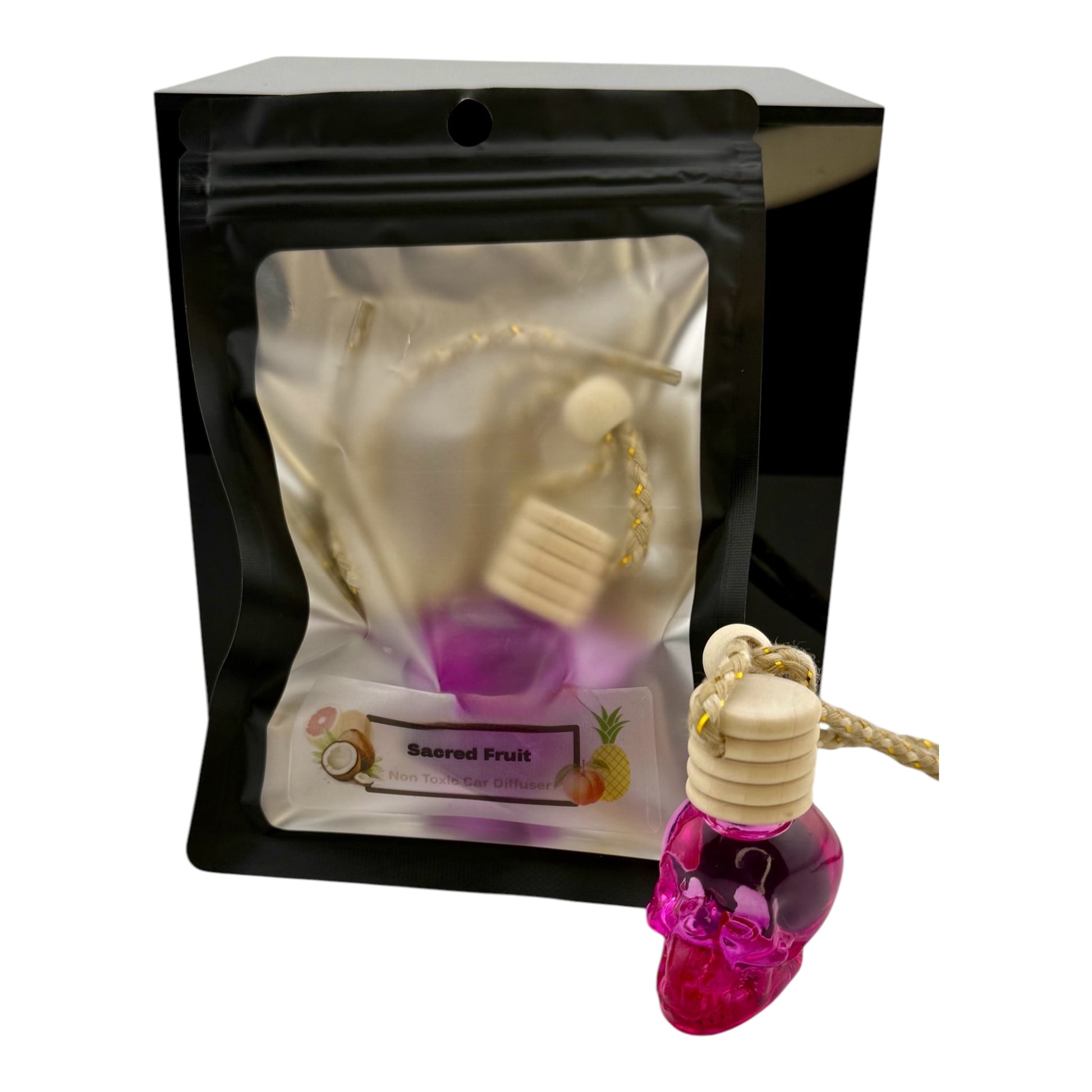 Pineapple , Passion fruit make this diffuser oh so delicious ! Available in Pink , and Purple skull with all natural wood tops .